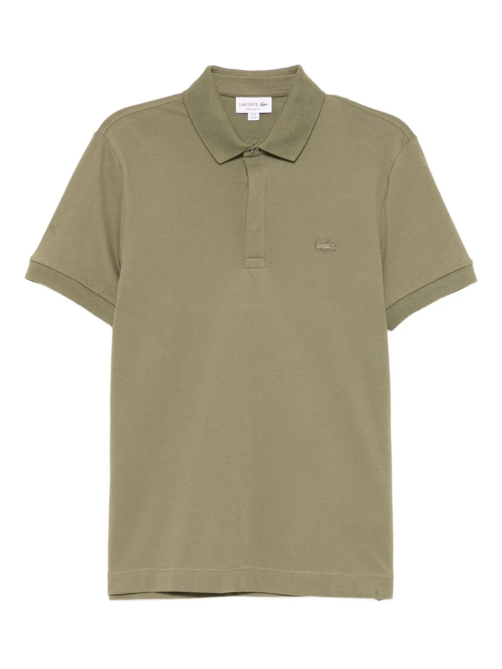 logo-applique polo shirt Highlights - Khaki green - Front button placket - Ribbed cuffs Imported Composition Cotton 94%, Elastane 6%