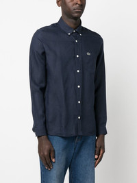 logo-embroidered button-down shirt Highlights - Navy blue - Linen/flax - Embroidered logo at the chest - Chest patch pocket - Button-down collar - Long sleeves - Buttoned cuffs - Curved hem Imported Composition Linen/Flax 100% SIZE & FIT Model measurements Height 6 ft 2 in(1.87 m) Bust/Chest 36.41 in(92.5 cm) Hips 37 in(94 cm) Waist 29.52 in(75 cm) FittingInformation This piece fits true to size. We recommend you get your regular size Cut for a loose fit Made with a mid-weight non-stretch fabric Washing instructions Machine Wash