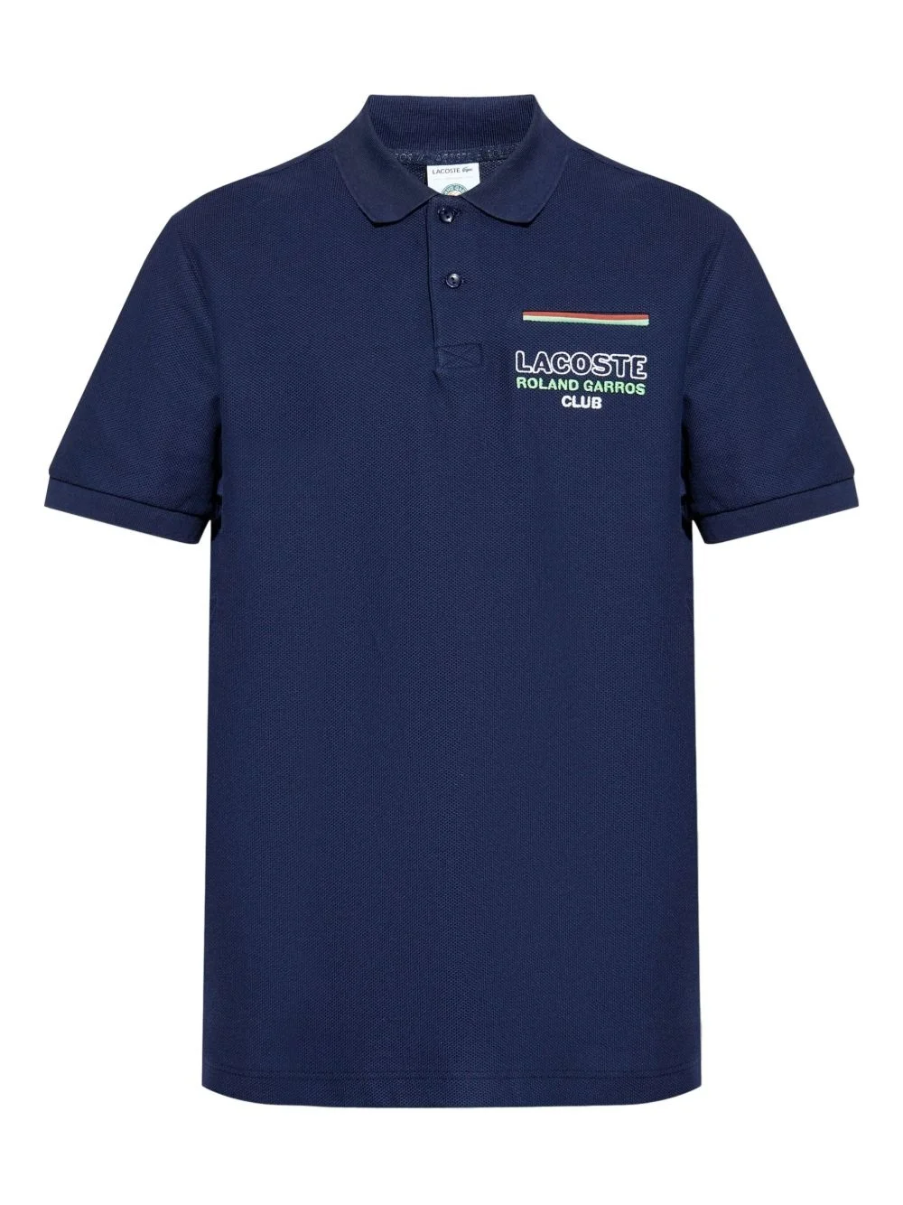 logo-embroidered polo shirt Highlights - Navy blue - Short front button fastening - Polo collar - Short sleeves - Straight hem Imported Composition Cotton 100%