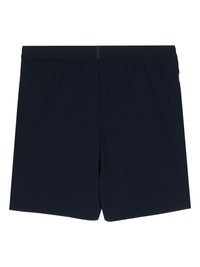 logo-embroidered track shorts Highlights - Navy blue - Embroidered logo to the front - Elasticated waistband - Two diagonal pockets to the sides - Straight hem Imported Composition Polyester 87%, Elastane 13%