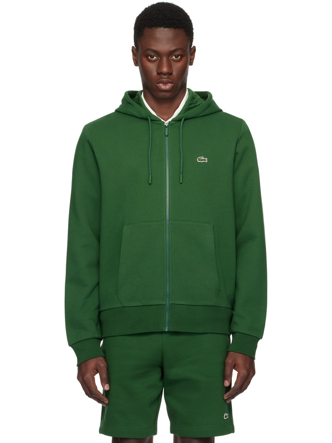 Organic cotton- and recycled polyester-blend fleece hoodie. · Drawstring at hood · Zip closure · Embroidered logo patch at chest · Patch pockets · Rib knit hem and cuffs Supplier color: Green