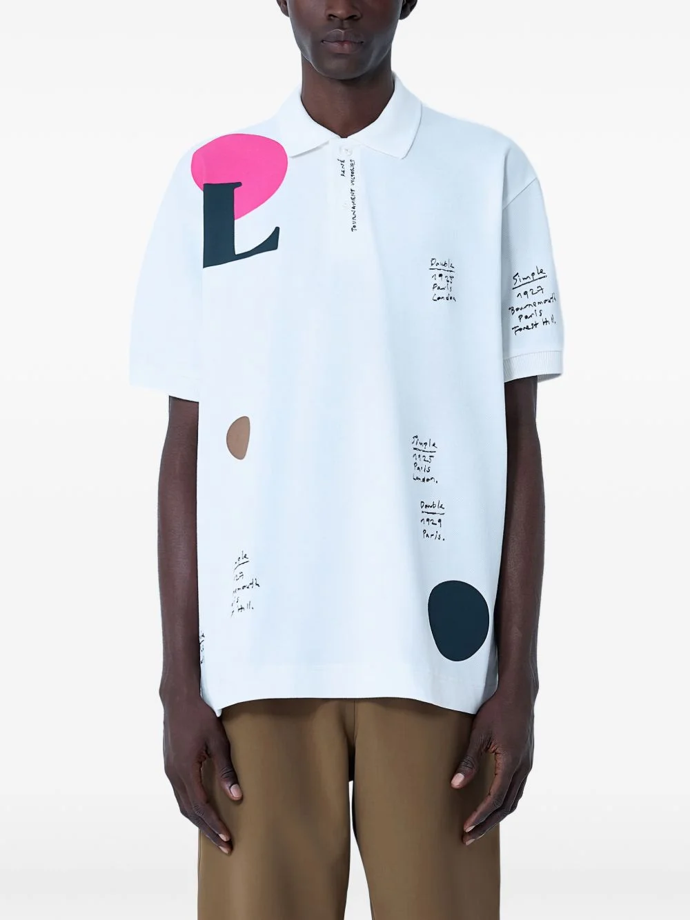 logo-motif polo shirt Highlights - White - Classic collar - Button fastening - Short sleeves - All-over details Imported Composition Cotton 100% Washing instructions Machine Wash