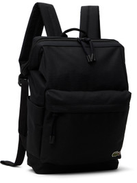 Canvas backpack in black. · Fixed carry handles · Adjustable padded shoulder straps · Zip pocket and embroidered logo patch at face · Patch pocket at sides · Two-way zip closure · Laptop compartment at interior · Mesh lining · H14.5" x W12" x D3" Supplier color: Black Textile. Made in Cambodia 251268M166001