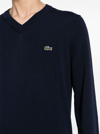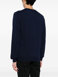 logo-embroidered fine-ribbed jumper Highlights - Navy blue/green - Cotton - Knitted construction - Logo patch at the chest - Ribbed trim - V-neck - Long sleeves - Straight hem Imported Composition Organic Cotton 100% SIZE & FIT Model measurements Height 6 ft 2 in(1.87 m) Bust/Chest 34.25 in(87 cm) Hips 36.22 in(92 cm) Waist 29.52 in(75 cm) FittingInformation Designed for a regular fit, offering a comfortable loose fit throughout the body The ribbed hem offers a close, comfortable fit Made with a midweight knit, this piece offers some stretch This piece fits true to size – take your usual size Washing instructions Machine Wash