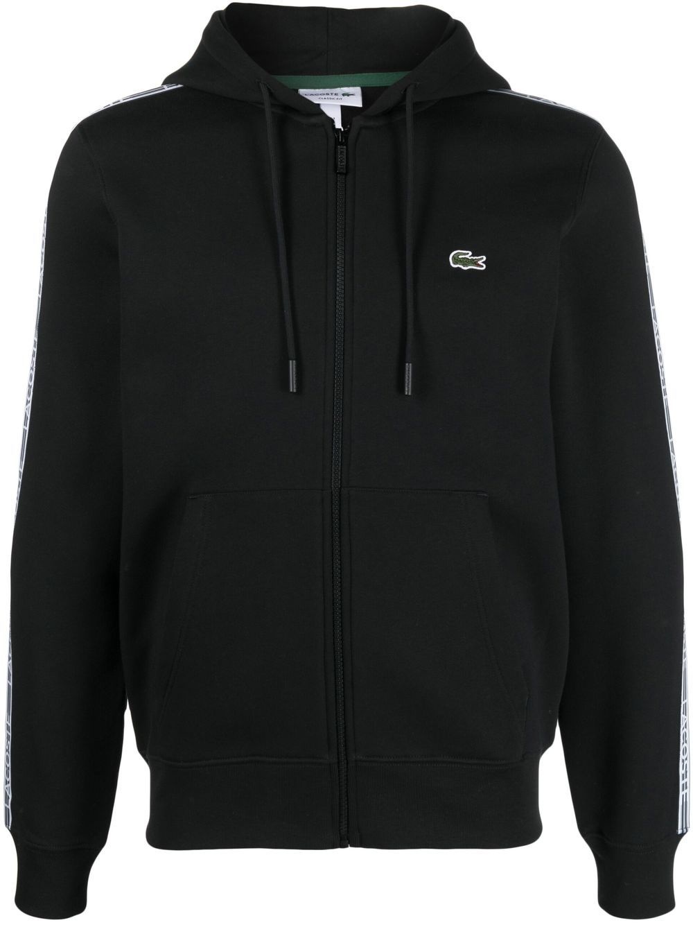 logo-patch cotton sweatshirt logo-patch cotton sweatshirt from LACOSTE featuring black, cotton, logo patch to the front, side stripe detailing, drawstring hood, front zip fastening, slip pocket to the front, long sleeves and ribbed cuffs and hem. Imported Composition Outer: Cotton 80%, Polyester 20% Lining: Cotton 100% SIZE & FIT Model measurements Height 6 ft 2 in(1.87 m) Bust/Chest 35 in(89 cm) Hips 35 in(89 cm) Waist 28 in(71 cm) FittingInformation This piece fits true to size. We recommend you get your regular size Cut for a relaxed fit Made with a mid-weight fabric