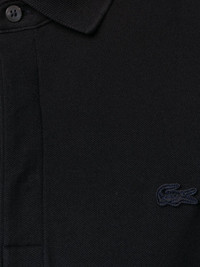 LACOSTE logo patch polo shirt Black cotton blend logo patch polo shirt from Lacoste featuring a classic polo collar, a front button fastening, short sleeves and a straight hem. Composition Cotton 94%, Spandex/Elastane 6% Washing instructions Machine Wash Wearing The model is 1.86 m wearing size 5