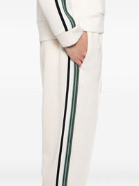 cotton-blended trousers Highlights - Cream - Elasticated waistband - Two side seam pockets - Rear zip-fastening pocket - Embroidered logo to the front Made in France Composition Cotton 90%, Polyester 10% SIZE & FIT Model measurements Height 6 ft 2 in(1.87 m) Bust/Chest 33.07 in(84 cm) Hips 35.43 in(90 cm) Waist 26.77 in(68 cm) FittingInformation Designed for a tapered leg, offering a loose unrestricted fit over the leg with a closer fit towards the ankle Adjust this piece’s waistband to your preference using the drawstring Made from a midweight non-stretch fabric, this piece offers minimal elasticity when worn Washing instructions Machine Wash