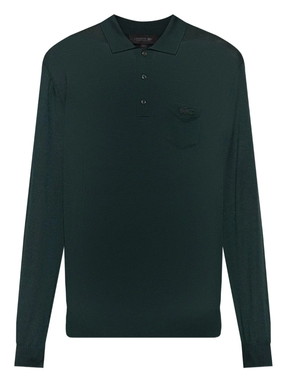long-sleeve polo shirt Highlights - Dark green - Polo collar - Button fastening - Chest pocket - Long sleeves Made in Italy Composition Wool 100% Washing instructions Read Manufacturer Guidelines