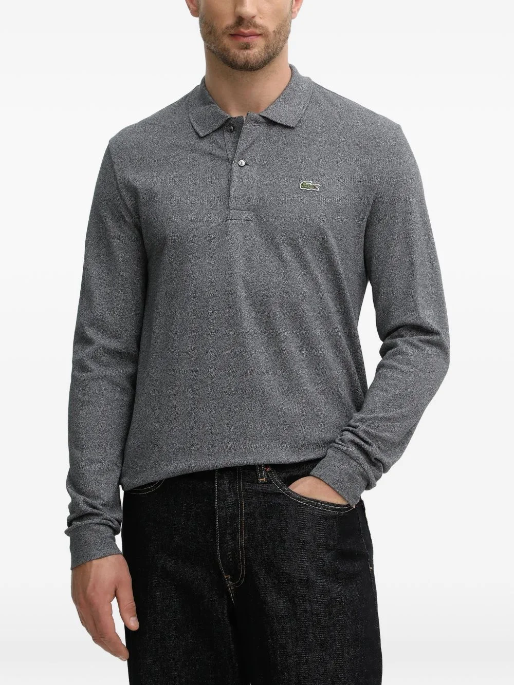 long-sleeved T-shirt Highlights - Grey - Button fastening - Collared - Long sleeves - Logo applique Imported Composition Fabric 100% Washing instructions Read Manufacturer Guidelines