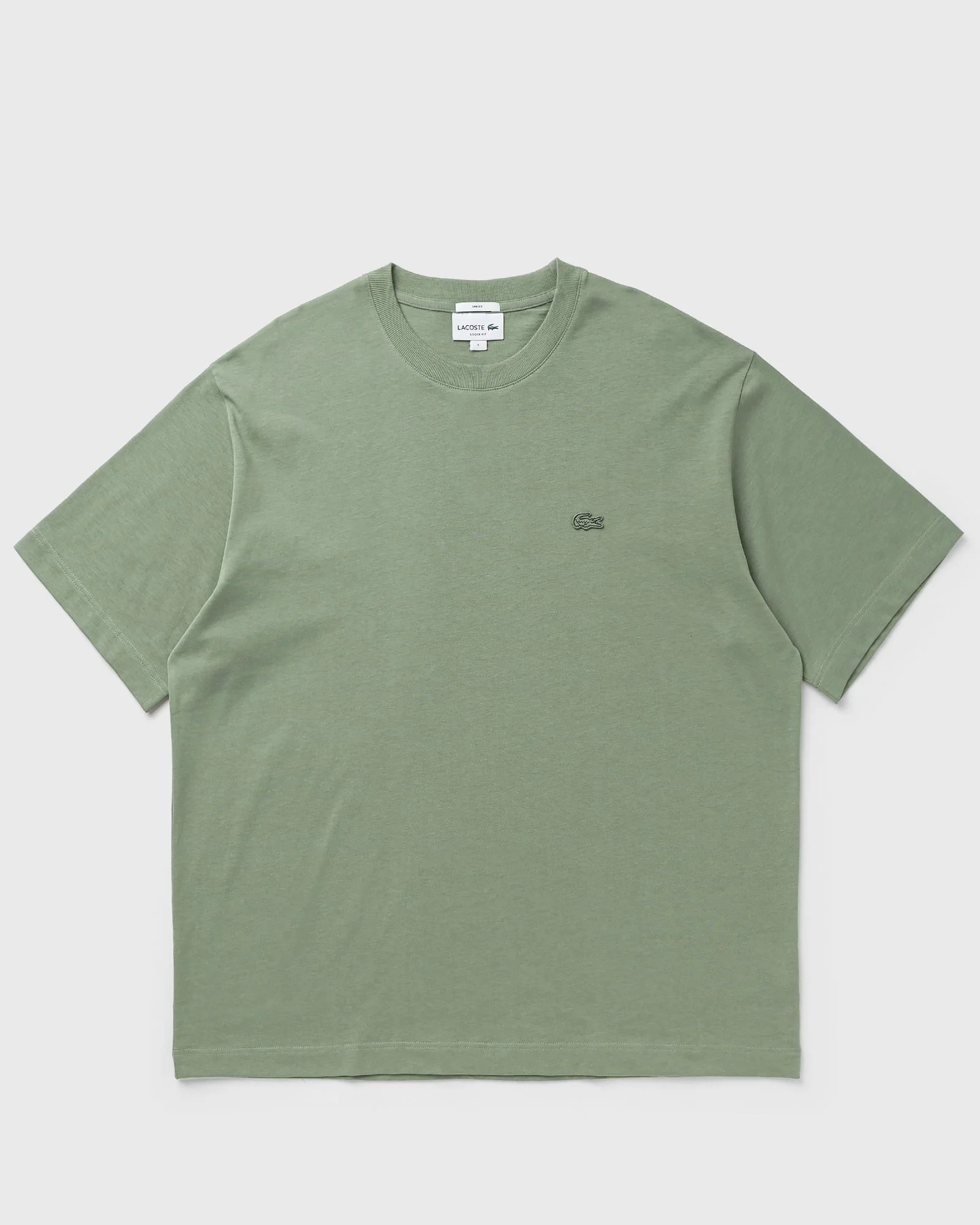 The Lacoste T-shirt is made from comfortable, heavyweight cotton jersey with a loose cut and minimalist design. A signature crocodile and decorative stitching round off the design. - Heavy jersey with organic cotton and recycled polyester from production waste - Relaxed fit, slightly dropped shoulders - Color-coordinated crocodile with black decorative stitching on the chest Article number: TH7744-S86 Gender: men Color: THYME Material: 100% Cotton