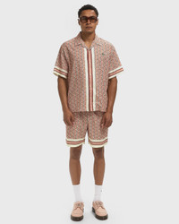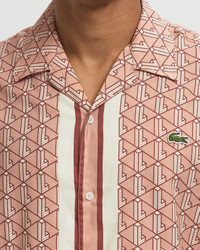 This short-sleeved shirt with signature details from Lacoste is made from twill cotton blend fabric for a lightweight and comfortable feel. A unique all-over monogram print, contrast stripes and an embroidered crocodile create a casual look. - Viscose and twill in organic cotton blend - All-over monogram print - Contrast stripes on the front and sleeves - Sewn-on embroidered crocodile on the chest Article Number: CH9094-F9I Gender: Men Color: LATTE/IBERIS-CRYSTAL Material: 53% Cotton, 47% Viscose