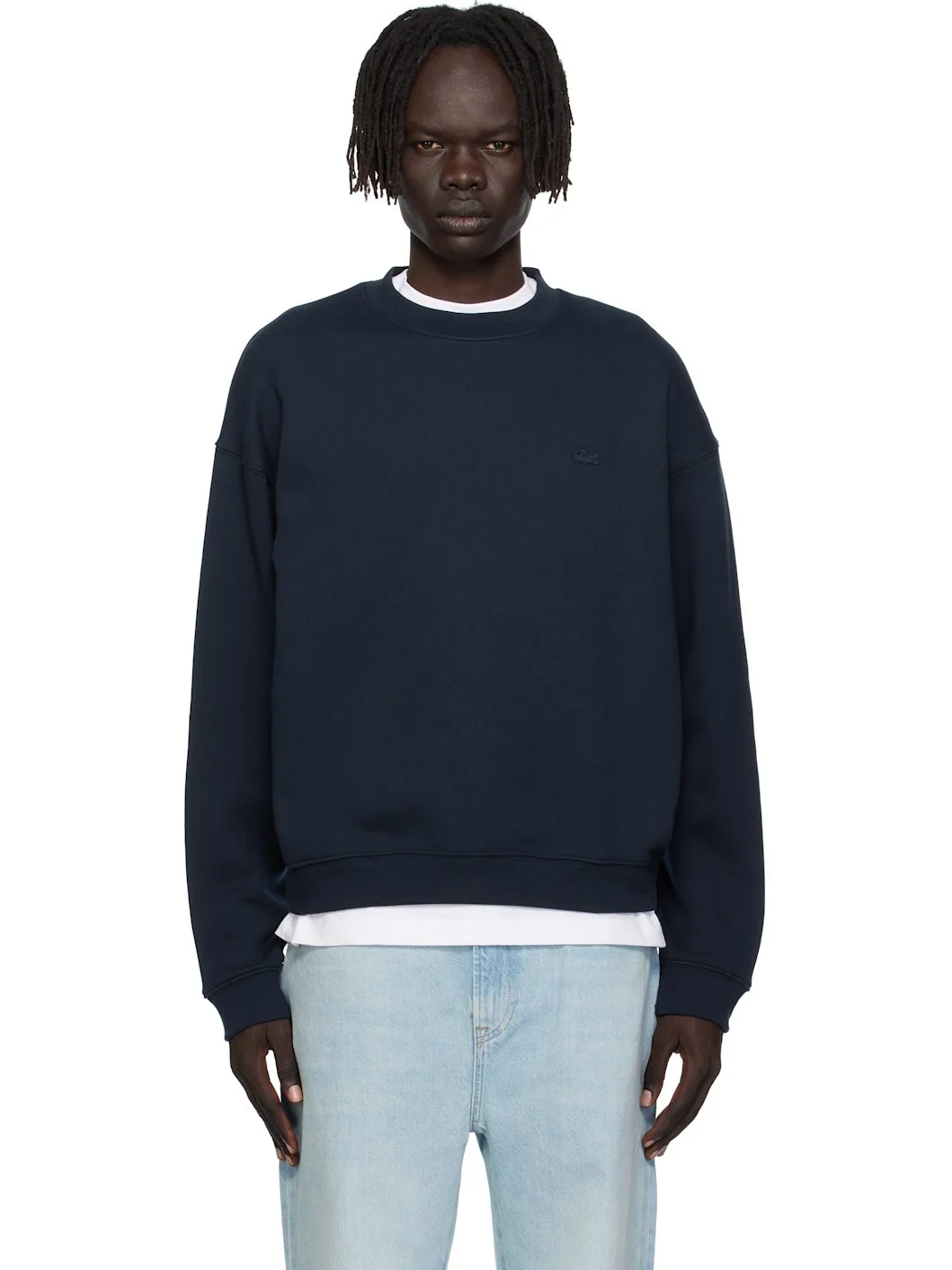 French terry sweatshirt. · Rib-knit crewneck, hem, and cuffs · Embroidered logo patch at chest · Dropped shoulders Supplier color: Navy blue 100% cotton. Made in Peru 252268M204005