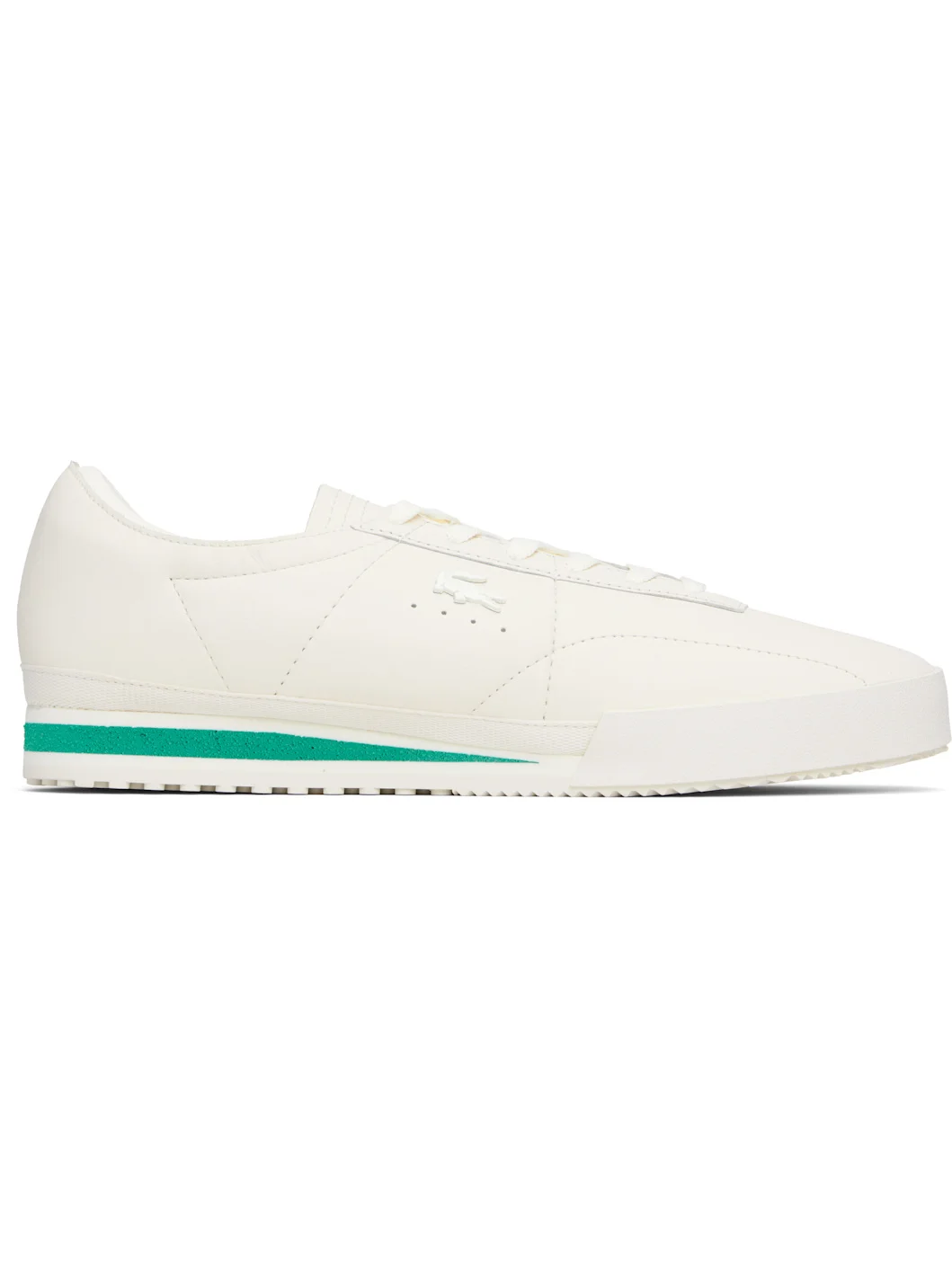 Low-top buffed leather sneakers. · Perforations at toe and sides · Lace-up closure · Padded collar · Logo hardware at outer side · Mesh lining · Foam rubber midsole · Treaded rubber sole Supplier color: Wht/Grn Upper: leather. Sole: rubber. Made in Thailand 252268M237024