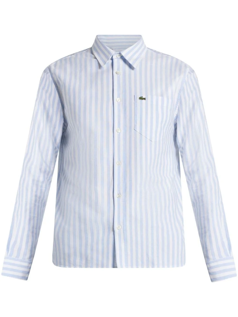 This elegant, timeless classic from Lacoste features contrasting stripes for added character. Made from Oxford cotton, the shirt is comfortable to wear every day. An elaborately embroidered crocodile rounds off the design. - Organic Oxford cotton - Regular, straight cut - Classic open collar - Button placket with mother-of-pearl buttons - Embroidered crocodile on the chest Article Number: CH5623-E7B Gender: Men Color: OVERVIEW/WHITE Material: 100% Cotton