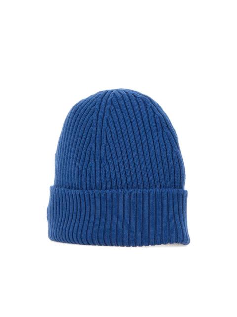 ribbed logo-patch beanie hat Highlights - Pink - Ribbed panel - Logo patch - Wool Imported Composition Wool 100%