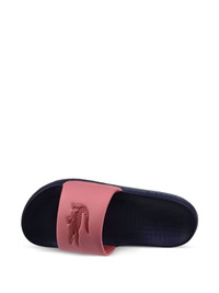 Serve 1.0 slides Highlights - Pink - Navy blue sole - Embossed crocodile logo - Textured footbed - Open toe - Single band upper Imported Composition Lining: Rubber 100% Outer: Polyurethane 100% Sole: Rubber 100%