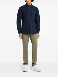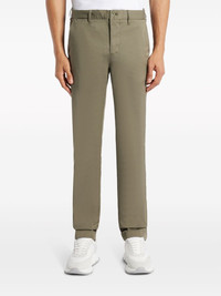 slim-cut twill trousers Highlights - Khaki - Stretch-cotton - Twill weave - Embroidered logo to the rear - Belt loops - Contrast stitching - Concealed fly and button fastening - Front patch pocket - Two side inset pockets - Two rear welt pockets - Slim cut Imported Composition Cotton 97%, Elastane 3% SIZE & FIT FittingInformation Designed for a slim fit, offering a comfortable fit that sits just away from the leg Made from a midweight stretch fabric, this piece offers elasticity and flexibility when worn This piece fits true to size – take your usual size