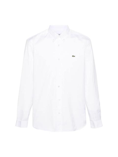 logo-patch cotton shirt Highlights - White - Cotton - Pinpoint oxford weave - Button-down collar - Long sleeves with buttoned cuffs - Pleat detailing to the sleeve and rear - Crocodile patch at the chest - Curved hem - Front button placket Imported Composition Cotton 100% SIZE & FIT Model measurements Height 6 ft 2 in(1.87 m) Bust/Chest 38.18 in(97 cm) Hips 36.61 in(93 cm) Waist 29.13 in(74 cm) FittingInformation Designed for a regular fit, allowing for a comfortably loose fit throughout the body Made from a midweight non-stretch fabric This piece fits true to size – take your usual size