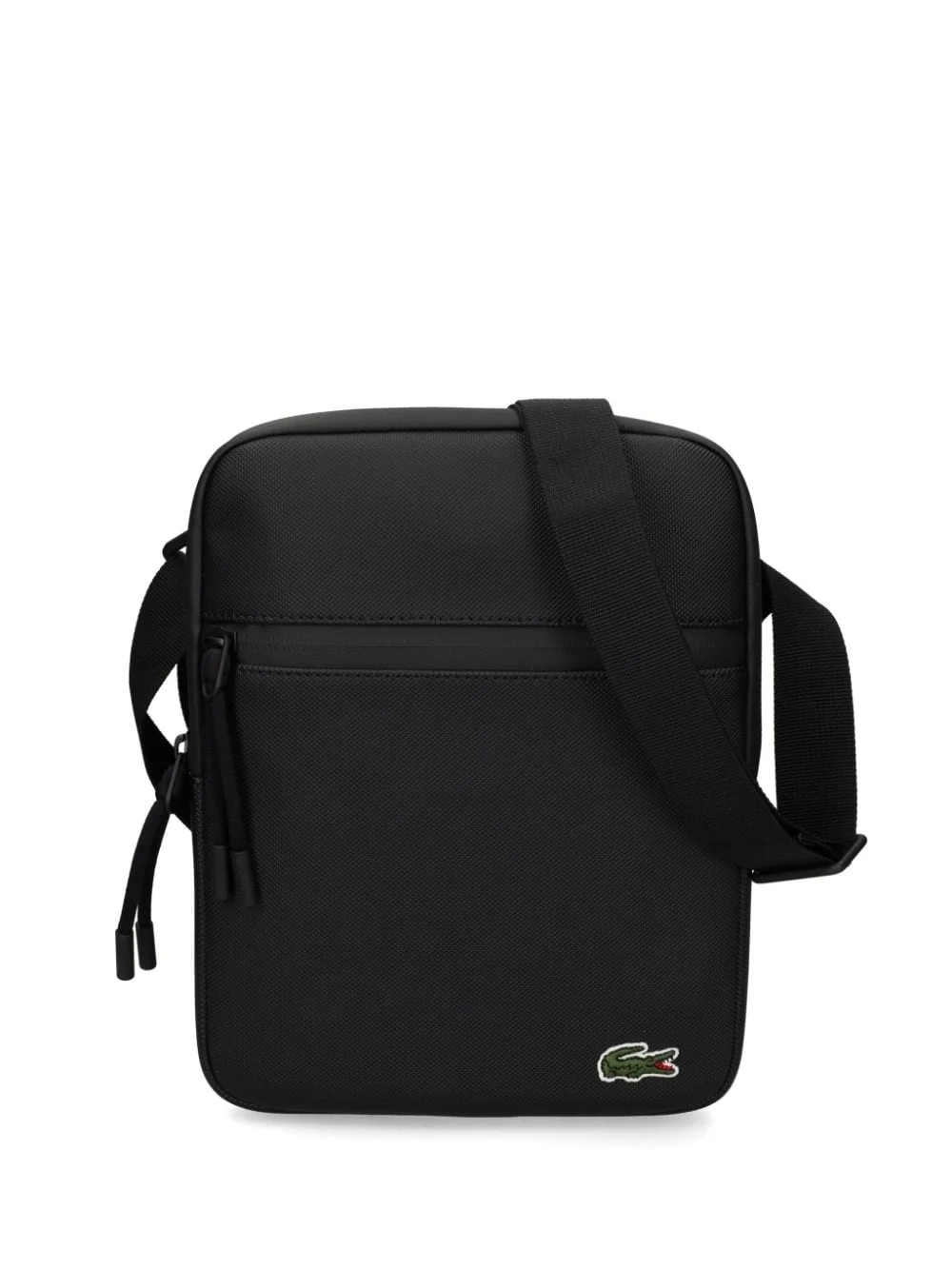 embroidered logo shoulder bag Highlights - Black - Pique weave - Top zip fastening - Front zip-fastening compartment - Embroidered logo to the front - Adjustable shoulder strap - Slip pocket to the rear - Internal mesh pockets Imported Composition Outer: PVC 100% SIZE & FIT Measurement DEPTH 3.14 in(8 cm) HEIGHT 6.88 in(17.5 cm) WIDTH 9.44 in(24 cm)