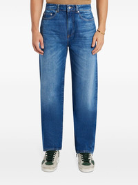straight-leg jeans Highlights - Blue - Organic cotton - Washed denim - Whiskering effect - Classic five pockets - Front button and zip fastening - Mid-rise - Belt loops - Logo patch to the rear - Straight leg Imported Composition Organic Cotton 100% Washing instructions Machine Wash
