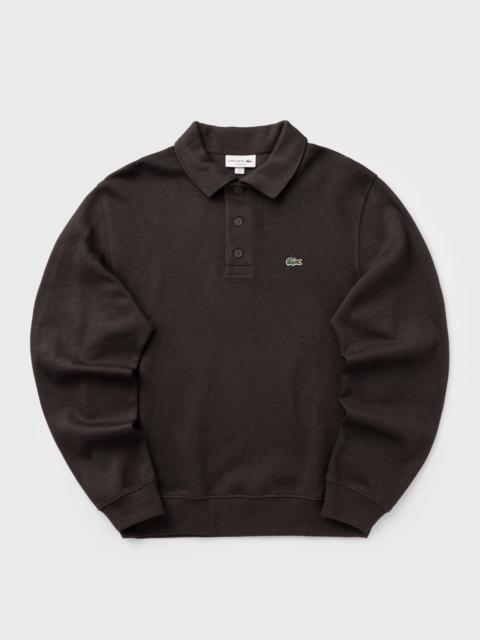 The Lacoste ribbed knit sweatshirt is made from soft ribbed interlock cotton jersey for comfortable wear and subtle texture. The polo collar with tone-on-tone buttons gives it that signature Lacoste feel, complemented by the subtle embroidered crocodile on the chest. The regular fit is relaxed, and the ribbed cuffs and hem provide a clean finish. - Ribbed cotton interlock fabric - Classic fit, comfortable sleeves - Ribbed hem and cuffs - Color-coordinated buttons - Sewn-on embroidered crocodile on the chest Article number: SH5781-166 Gender: men Color: Navy Blue Material: 100% Cotton