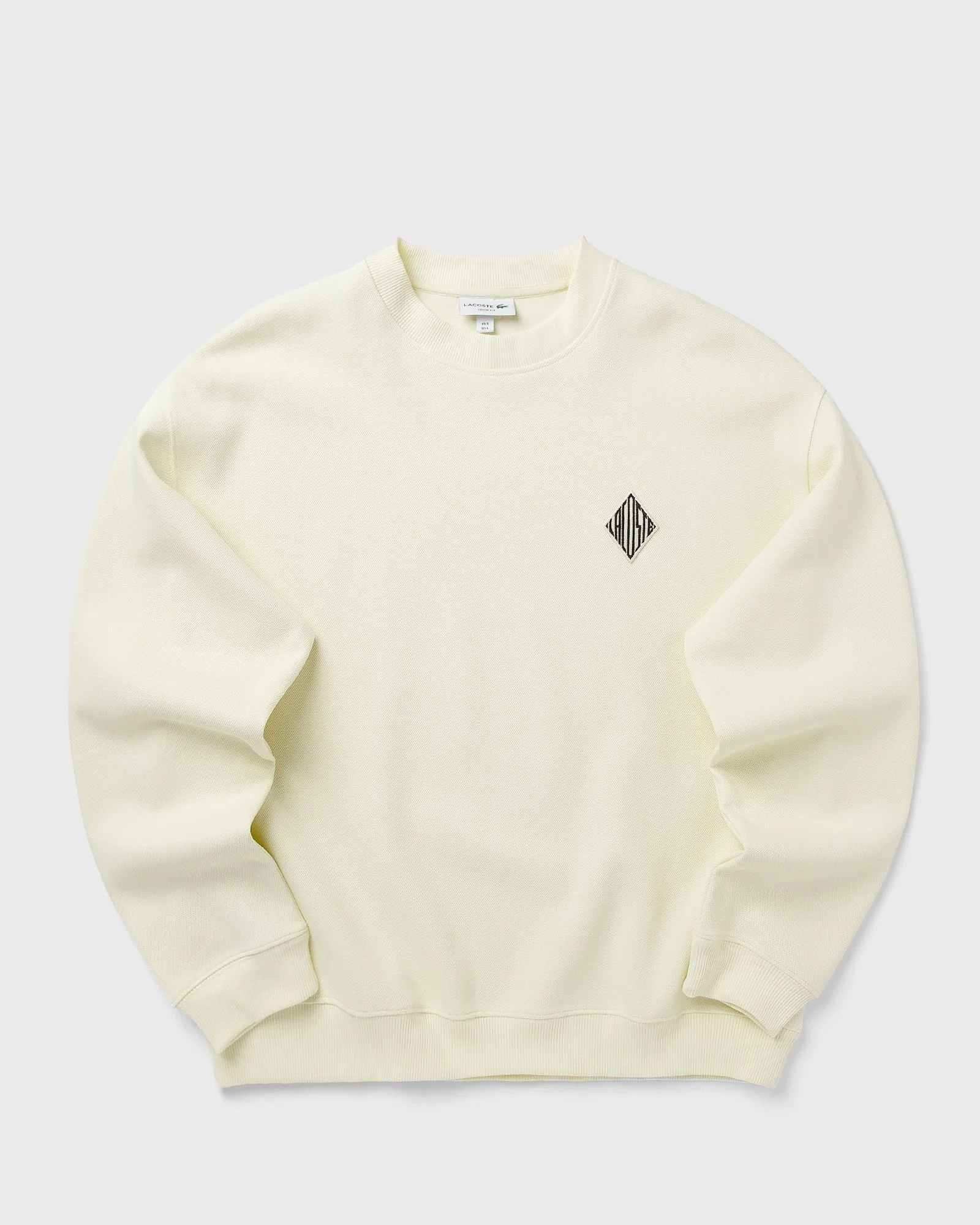 The Lacoste sweatshirt combines sporty elegance with classic design. Made from iconic pique knit fabric, it features a retro branding badge, an embroidered Lacoste crocodile on the chest, and ribbed knit details on the cuffs and hem. - Double-sided organic cotton pique and recycled polyester - Loose fit, dropped shoulders - Rib knit at the neck, cuffs, and hem - Color-coordinated at the neck, waistband, and cuffs - Diamond-shaped logo badge on the chest - Color-coordinated embroidered crocodile below the neck Article number: SH0035-S7G Gender: men Color: POWDER Material: 52% Cotton, 43% Polyester, 5% Spandex/elastane