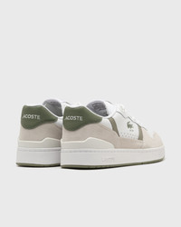 The Lacoste T-Clip Set is a reissue of a classic. Taking inspiration from the top performance models of the 1980s, this model features a leather upper, suede inserts and premium vintage details, including a center embossed crocodile. - Leather and suede upper - Perforations on the quarter and vamp for better air circulation - Reinforced TPU heel counter for optimal grip - Woven label on the tongue with crocodile and Lacoste branding - Textured, robust rubber sole with extra grip - Embossed crocodile on the quarter Article number: 50SMA0185-2H4 Gender: men Color: WHT/KHK Material: 30% Rubber, 70% Synthetic/Textile