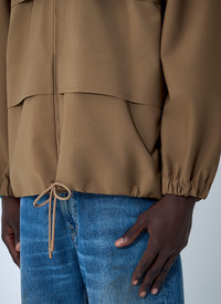 Stand collar jacket in technical weave with overlay construction. - Stand collar - Front zip fastening - Long sleeves - Front overlay panels - Drawstring hems - Extended cuffs - 100% Technical Blend Fabrication. Dry clean - Color: Camel - Code: BH3703 52I