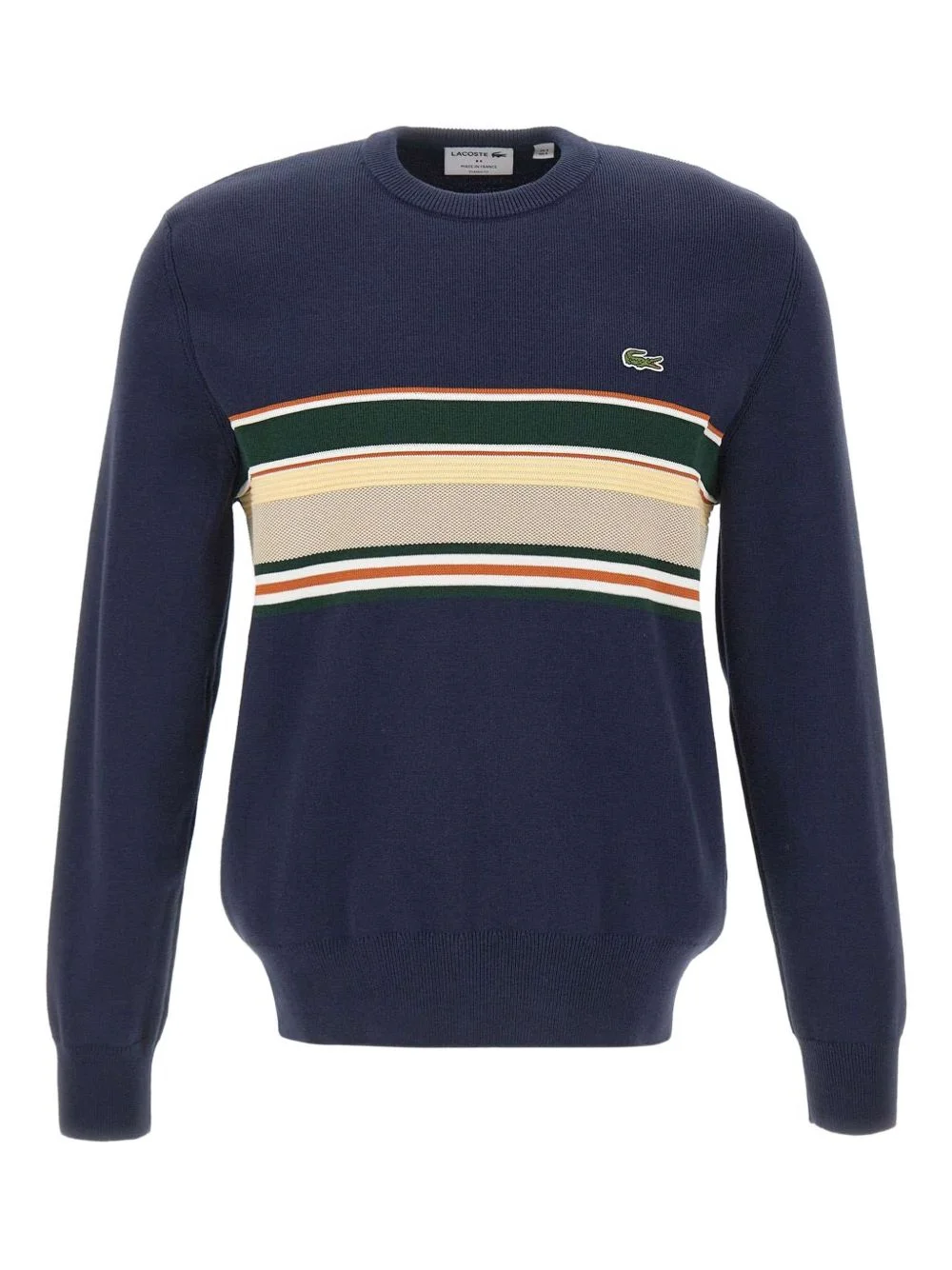 textured-stripes logo-embroidered sweater Highlights - Blue - Textured stripes to the front - Ribbed edges - Embroidered logo - Round neck Made in France Composition Organic Cotton 80%, Wool 20% Washing instructions Read Manufacturer Guidelines