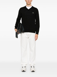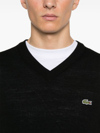 V-neck sweater Highlights - Black - Wool blend - Knitted construction - Ribbed v-neck - Long sleeves - Logo patch at the chest - Ribbed cuffs and hem Imported Composition Polyester 50%, Wool 50% SIZE & FIT Model measurements Height 6 ft 2 in(1.87 m) Bust/Chest 38.97 in(99 cm) Hips 37.99 in(96.5 cm) Waist 29.52 in(75 cm) FittingInformation Designed for a regular fit, offering a comfortable loose fit throughout the body The ribbed hem offers a close, comfortable fit Made with a midweight knit, this piece offers some stretch