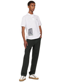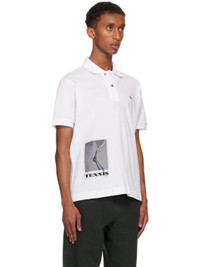 Cotton pique polo. · Rib-knit spread collar and cuffs · Mother-of-pearl two-button placket · Embroidered logo at chest · Graphic patch at front hem · Tennis-tail hem Supplier color: White Body: 100% cotton. Trim: 99% cotton, 1% elastane. Made in Turkey 242268M213029