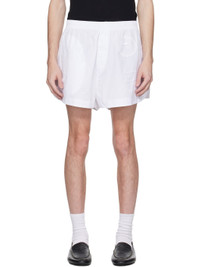 Cotton poplin shorts. Embroidered logo graphic appliques throughout. · Elasticized waistband · Three-pocket styling · Mock fly · Embroidered logo patch at front hem · Vent at outseams Supplier color: White 100% cotton. Made in Portugal 251268M193018