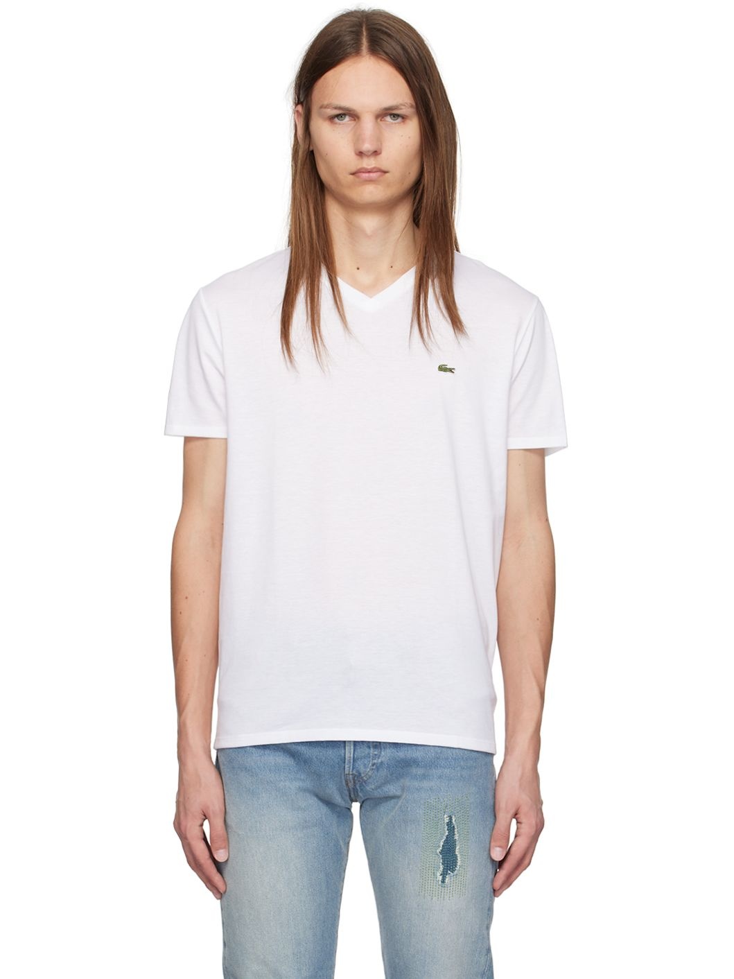 Cotton jersey T-shirt. · Rib knit V-neck · Embroidered logo patch a chest Supplier color: White