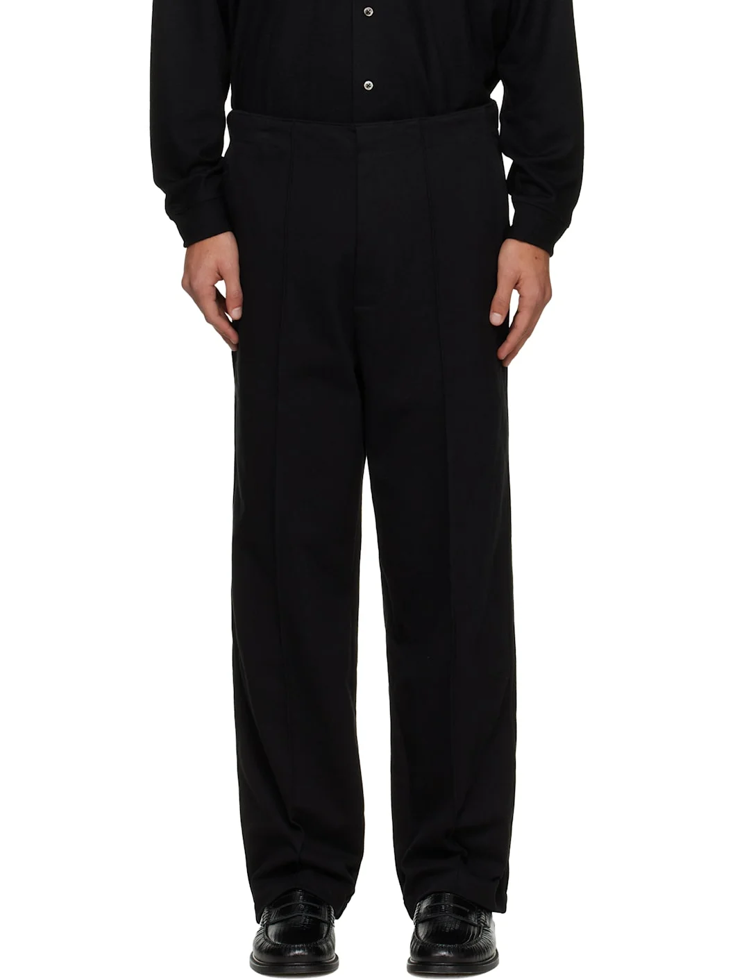 Heavyweight 10 oz cotton jersey trousers. · Pre-shrunk · Straight-leg · Mid-rise · Concealed drawstring at partially elasticized waistband · Two-pocket styling · Mock fly · Pinched seam at front legs Supplier color: Black 100% cotton. Made in United States 252840M191003