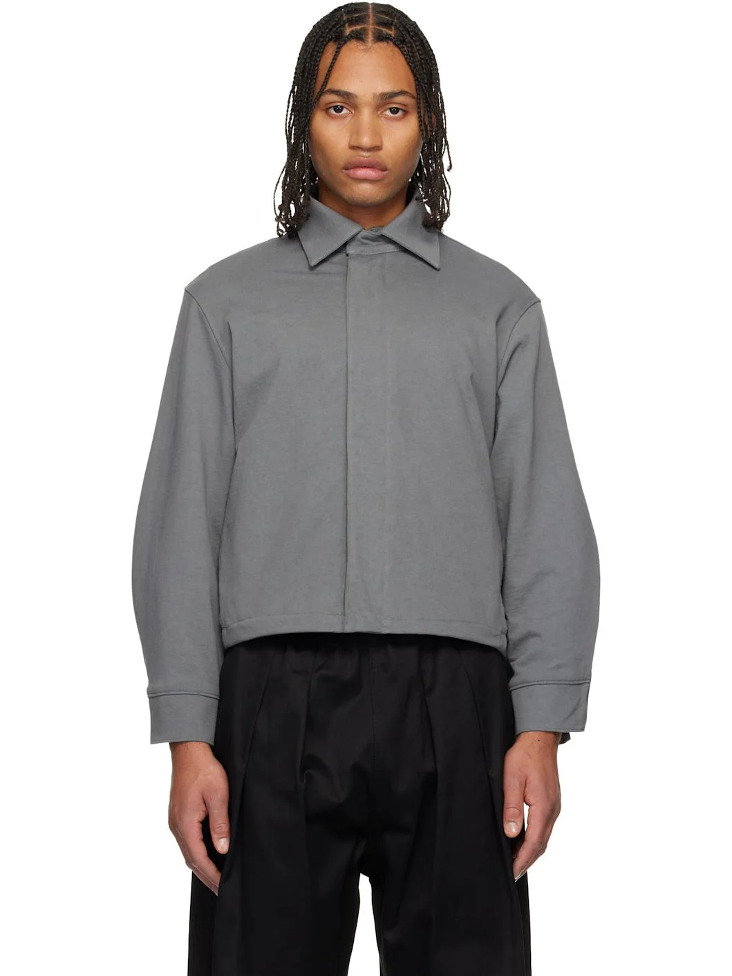 Insulated 10 oz cotton jersey jacket. · Pigment-dyed and heavyweight · Spread collar · Zip closure with press-stud placket · Seam pockets · Adjustable press-stud tab at side seams · Press-stud barrel cuffs · Full quilted jersey lining Supplier color: Kelp Body: 100% cotton. Lining: 80% polyester, 20% cotton. Made in United States 252840M180003