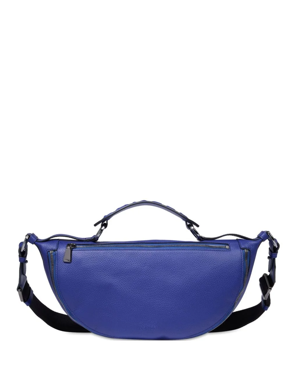 Origami belt bag Highlights - Navy blue - Top zip fastening - Adjustable waist strap - Main compartment Made in Italy Composition Outer: Grained Leather 100% Lining: Cotton 100% SIZE & FIT Measurement DEPTH 5.11 in(13 cm) HEIGHT 4.52 in(11.5 cm) WIDTH 12.2 in(31 cm)