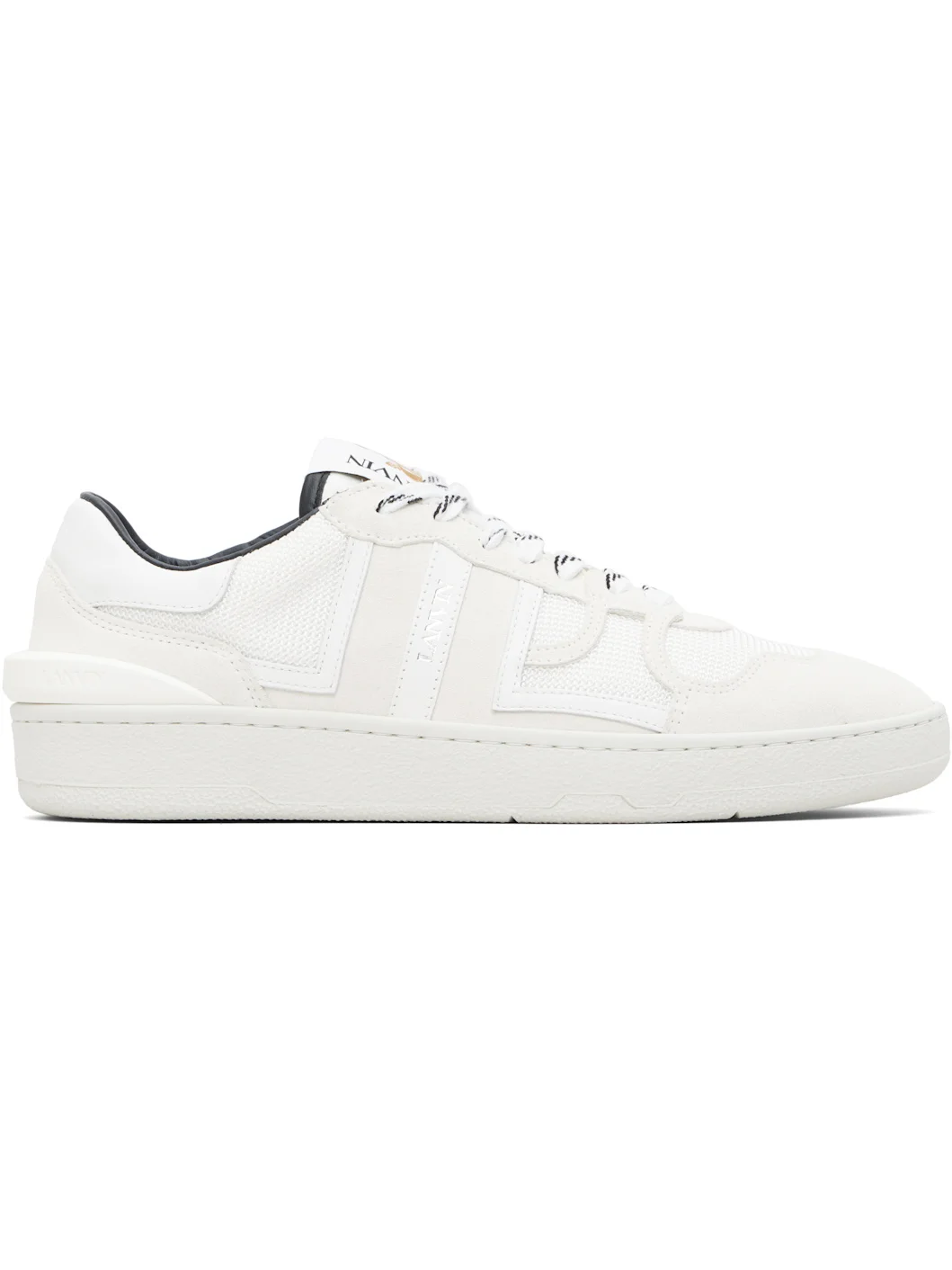 Low-top mesh, calfskin suede, and buffed calfskin sneakers. · Lace-up closure · Logo patch at tongue · Padded tongue and collar · Logo stamp at outer side · Logo embossed at outer side and heel tab · Buffed calfskin and mesh lining · Treaded rubber sole Supplier color: White Upper: calfskin, textile. Sole: rubber. Made in Portugal 252254M237053
