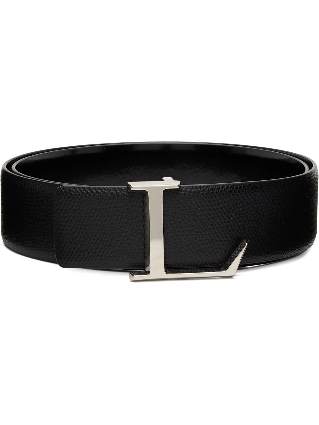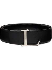 Grained calfskin belt. · Logo hardware at post-stud fastening · W1.25" Supplier color: Black Calfskin. Made in Italy 252254M131002