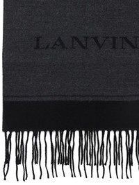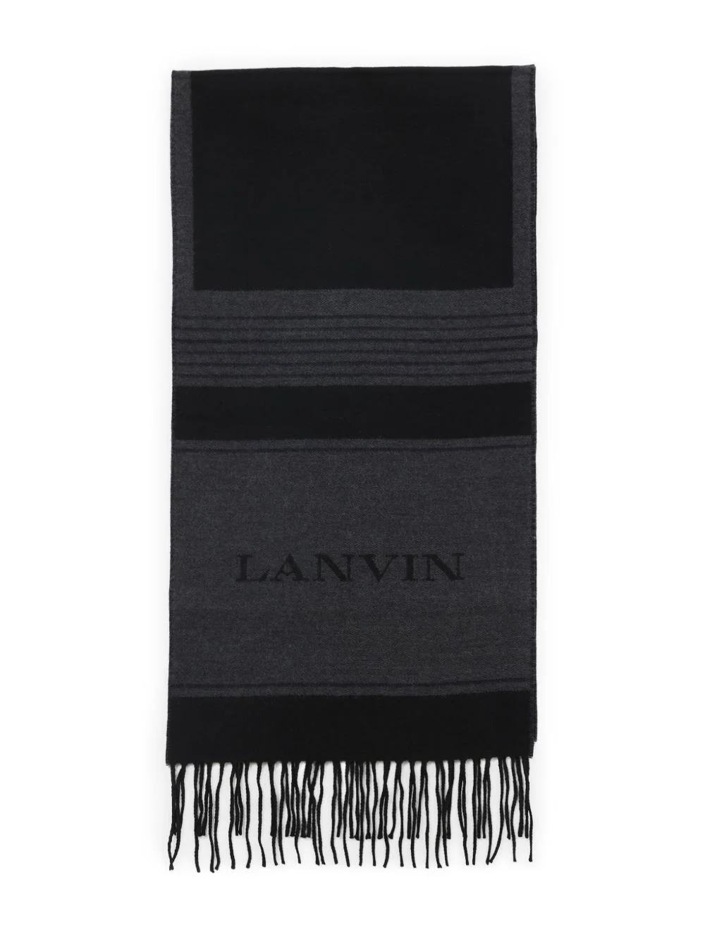 striped fringed scarf Highlights - Black - Grey stripes - Logo jacquard - Fringed edges - Wool - Rectangular shape Made in Italy Composition Wool 100% Washing instructions Read Manufacturer Guidelines