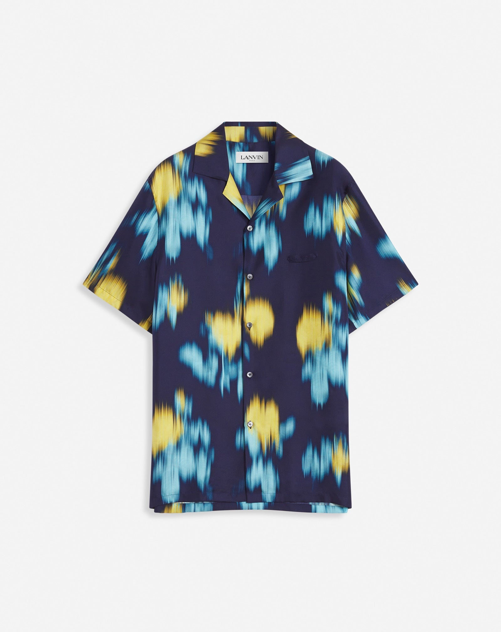 BLURRED FLORAL PRINT BOWLING SHIRT