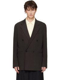 Plain-woven stretch viscose- and virgin wool-blend blazer. · Notched lapel · Double-breasted button closure · Welt pockets at front · Vent at cuffs · Central vent at back hem · Welt pockets at interior · Full satin lining · Horn hardware Supplier color: Dark brown Body: 64% viscose, 34% virgin wool, 2% elastane. Lining: 100% cupro. Made in Italy 252254M195005