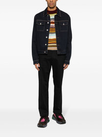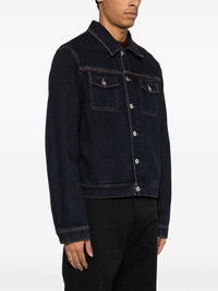 button-fastening denim jacket Capturing Lanvin's minimalistic Parisian style, this classic denim jacket is imagined in navy blue and complemented with silver-tone buttons. Highlights - Navy blue - Cotton - Denim - Contrast stitching - Classic collar - Two front flap pockets - Front button fastening - Long sleeves - Buttoned cuffs - Straight hem - Silver-tone hardware Made in Italy Composition Cotton 100% SIZE & FIT Model measurements Height 6 ft 2 in(1.89 m) Bust/Chest 35.03 in(89 cm) Hips 38.18 in(97 cm) Waist 29.92 in(76 cm) FittingInformation Designed for a boxy fit, intended for a loose fit throughout The adjustable tabs allow for fitted preferences Sturdy and hard-wearing, this denim piece offers no stretch This piece fits true to size – take your usual size Washing instructions Machine Wash
