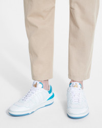 The Clay sneakers redefine convention and come in leather and mesh. A graphic design with a contrasting "JL" logo detail, available in a high-top or low-top version. Details - Calfskin Clay sneakers - Color: white, blue - JL logo on the sides - JL logo on the sides and tongue with Mother and Child logo - Made in Portugal Composition - Main material: calfskin - Material 2: polyester - Sole: rubber Cleaning and care - For the mesh parts, using a damp cloth, make circular motions on the material. In case of stains or marks, add a few drops of liquid soap. Allow to air dry. For the suede parts, use a suede eraser. - Store in a dry, dark place in its original packaging. FM-SKDK00-PERF-E220020
