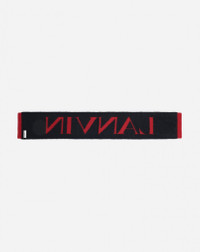 This cashmere, silk and alpaca blend scarf gives the Lanvin heritage logo pride of place in a large and bold reinterpretation. Its strong look is enhanced by its softness and warmth. Details - Lanvin logo scarf - Color: Red and Navy Blue - Made in Turkey Size and fit - 79 x 14 inches Composition - Main material: 40% alpaca, 30% cashmere, 30% silk Cleaning and care - For cleaning information, please refer to the product label. - Store in a dry, dark place in its original packaging. AM-SAMS07-CAMO-A213024