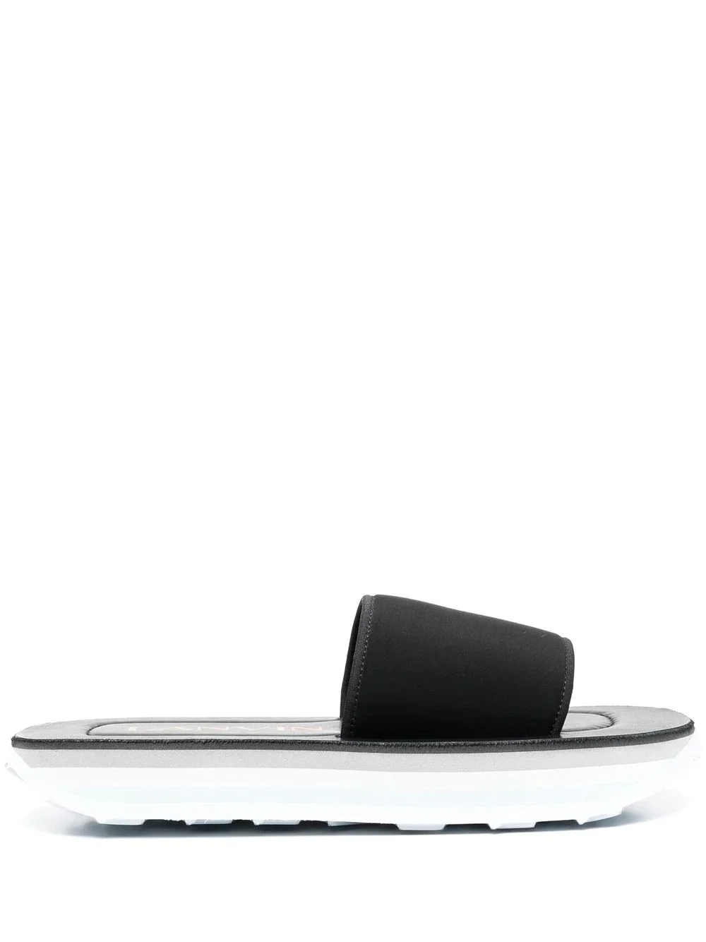 chunky open-toe sandals jet black/white open toe branded insole chunky rubber sole Imported Composition Outer: Polyamide 100% Sole: Rubber 100% Lining: Fabric 100% SIZE & FIT Measurement HEEL 1.37 in(3.5 cm) Sole height 1.37 in(3.5 cm)