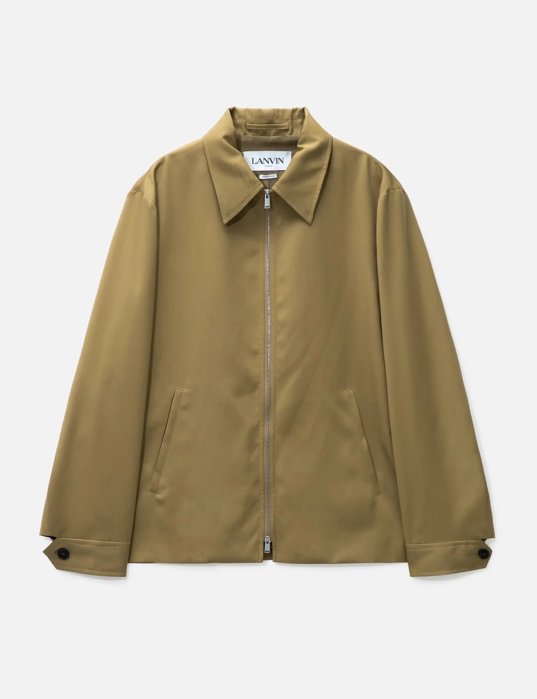 - Lanvin - Classic Zipped Jacket - Classic wool twill jacket - Straight fit - Spread collar - Wrinkle-resistant - Front 2-way zip closure - Two front welt pockets - Silicone patch in back embroidered with the Lanvin logo - Full lining - Made in Romania - Color: Desert - Material: 100% Wool Woven; Lining : 100% Viscose Woven - See more Jackets and Clothing SIZING - Model wears size 46 - Model measures: Height 186cm, Chest 34”/86cm, Waist 28”/71cm, Hip 36”/91cm