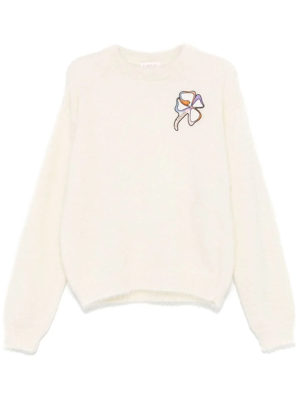 clover-patch sweater Highlights - White - Mohair blend - Knitted construction - Brushed effect - Clover patch detail - Embroidered logo - Ribbed trim - Crew neck - Long sleeves - Straight hem Made in Italy Composition Mohair 67%, Polyamide 28%, Wool 5%
