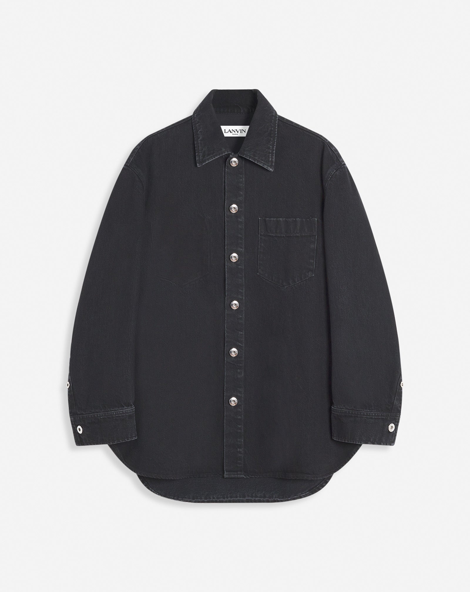The relaxed fit of this overshirt is combined with cotton denim and metal buttons. Its simple design makes it perfect for casual chic daywear. Details - Cocoon denim overshirt - High collar - Buttoned fastening on the cuffs - Patch pocket on the chest - Made in Italy Size & fit - This is a relaxed fit, size down if you are between two sizes - For more information, please see our size guide. Composition - Main fabric : 100% cotton woven SKU: RM-SI0326-D085-A2410S