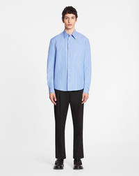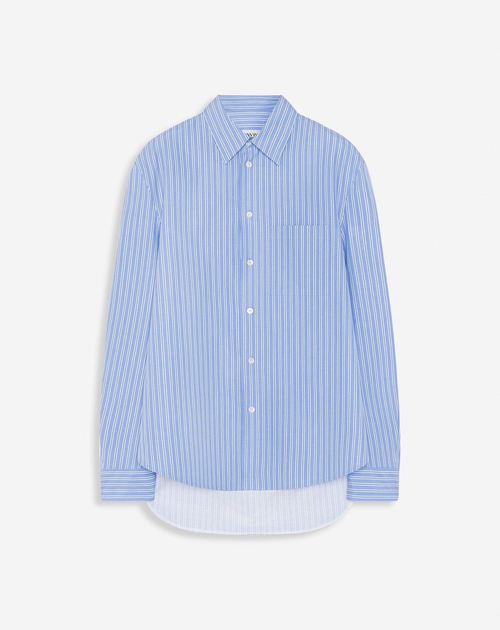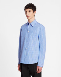 Details - Cotton poplin cocoon-fit shirt with long sleeves and a striped print - Front patch pocket - Classic cut - Color: blue/white - Made in Italy Size and fit - The model is 189 cm / 6'2" tall - He wears a size 43 Composition - Main material: 100% cotton Cleaning and care - Contains non-textile parts of animal origin - Delicate wash at 30°C (86°F) SKU: RM-SI0111-5716-A23200039
