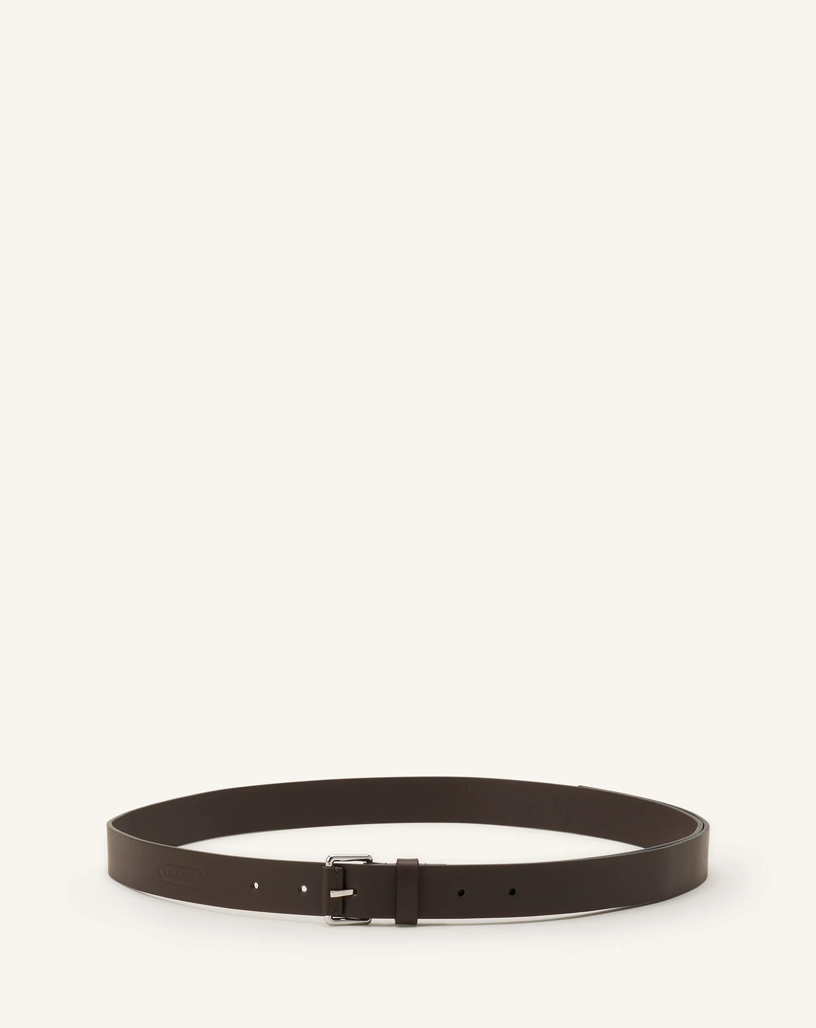 This raw-edged leather belt features a metal buckle engraved with the Lanvin logo. It elegantly accessorizes both day and evening outfits. Details - Compagnon leather belt - Adjustable size - Raw edges - Matte leather loop - Metal buckle - Made in Italy Composition - Main fabric : 100% calf - bos taurus - Lining : 100% calf - bos taurus SKU: AM-BECCB4-VEBF-H256485